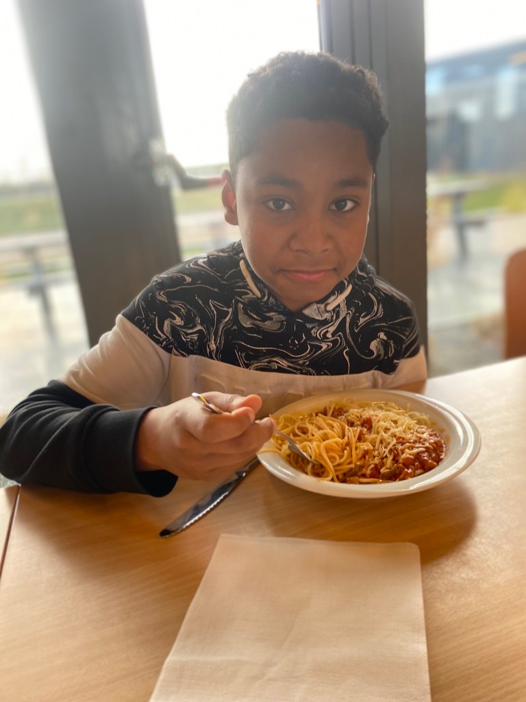 Na inspanning, komt maagjes vullen! Na een eerste leuke namiddag kregen we lekker spaghetti op het menu. Alle geluk want straks staat er nog een leuke avondactiviteit op de planning.