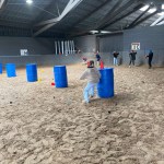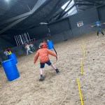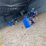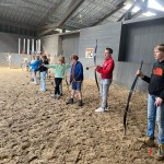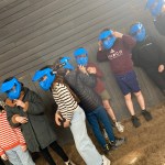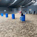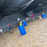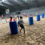 Erna was er een soort boogschieten. Eerst moesten we om de beurt over het veld lopen en mocht iedereen op ons schieten. Erna werd er in twee teams gewerkt en moesten we kegels van tonnen schieten, om daarna op elkaar te schieten. Als laatste opdracht moesten we allemaal op elkaar schieten en proberen te overleven. Arthur is het langst blijven leven, Felix was tweede en Lars derde. Het was super leuk!