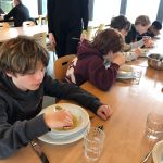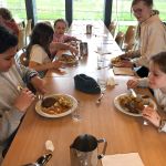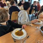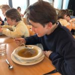 Na sporten en wandelen roepen de buikjes om een lekkere maaltijd. Natuurlijk was die te vinden in onze eetzaal. We werden alweer verwend … Juliennesoep – gebakken aardappelen met appelmoes en hamburger – fruitsla. Wat hebben ze hun buikjes gevuld!