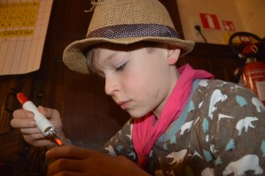 We hebben een quiz gedaan met Pascal en Veerle. Per commando deden we allerlei spelletjes. Vanmorgen ontbeten we in pyjama. Daarna schreven we enkele brieven. Na de middagrust koos ik om te werken met de brandertjes. Dat was mijn dag.
