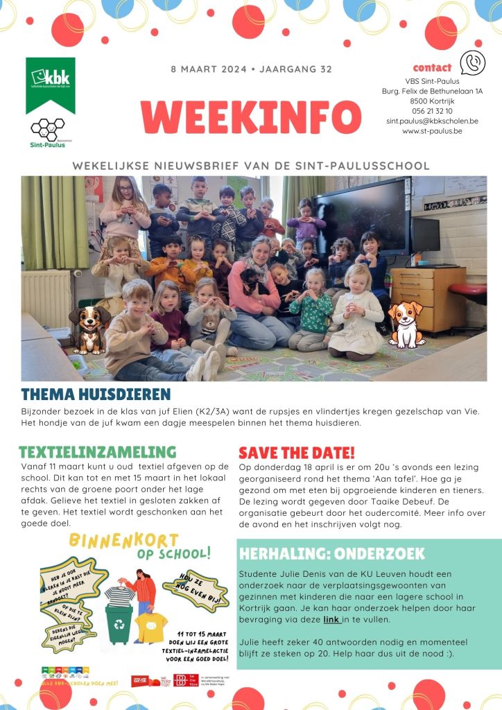 Lees via de volgende link de weekinfo van 8 maart