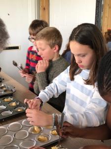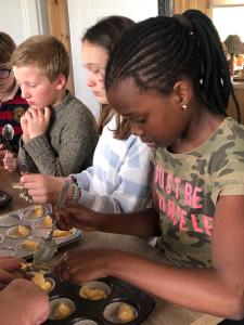 Juf Ophelia mocht met een aantal kinderen aan de slag gaan met hoeveproducten. Vooral het interieur viel op, ze werden als het ware teruggekatapulteerd in de tijd. Door het goede teamwork slaagden ze erin om overheerlijke cupcakes te bakken. Dank u wel aan de twee begeleiders van de boerderij.