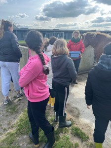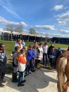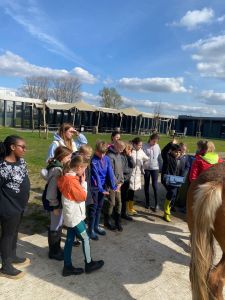 Een deel van de klas kreeg vandaag de kans om vandaag te gaan paard/ponyrijden. De activiteit begon met het ontdekken van de paarden. Zowel wij als de paarden kregen de tijd om elkaar te leren kennen. Daarna stond het verzorgen van de paarden op de planning. Vooraleer we de paarden konden bestijgen leerde juf Ulrike ons hoe we ons paard moesten zadelen. Na het verzorgende en ontdekkende deel overwonnen we onze angsten en begon een spannend paardenritje. Uiteindelijk kwam zowel paard als kind er zonder kleurscheuren af.