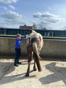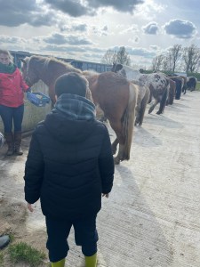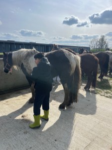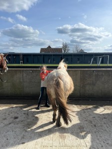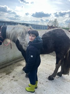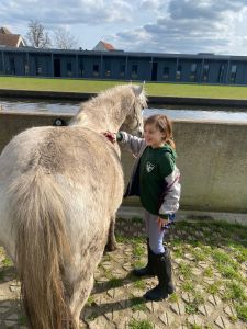 Mijn pony heette Pico. We moesten een diagonaal rijden en dan moesten we Pico belonen met een knuffel. Daarna hebben we ze afgezadeld en naar de wei gebracht. Het was super tof!