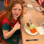 Het eten in de Boerekreek is heel lekker. Maandag was ik heel nieuwsgierig, maar het valt mee. Niet alle eten was lekker. Ik heb gehoord dat we vanavond pita mogen eten.