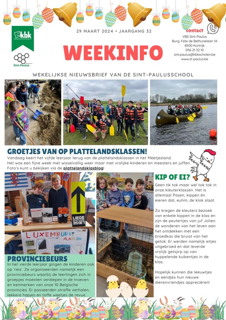 Lees via de volgende link de weekinfo van 29 maart