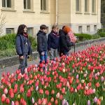 Na het ontbijt zijn we naar een reuzentuin geweest met prachtige bloemen en bomen. We hebben zelfs een eekhoorn gezien. Het was ook nog lang wandelen naar de school. Op de naschoolse opvang was er een groot zwijn en schattige konijnen, schapen en geiten.