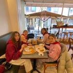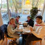Gisteravond aten we in een tof restaurantje met twee verdiepingen. Wij zaten boven. Ik at een lekkere hamburger met frietjes. Vandaag at ik bij het ontbijt een pistolet met choco en een eitje. We zijn ook naar het experimentarium geweest in Kopenhagen. Suzanne, Babs en ik zaten in een groep en we mochten helemaal alleen rondlopen. Mijn favoriete experiment was een laserpiano. We namen daar ook het middagmaal. Ik at een slaatje met kip en bubbletea. We zijn ook gaan shoppen in Kopenhagen zelf. Ik kocht een lego en een geheim cadeautje.