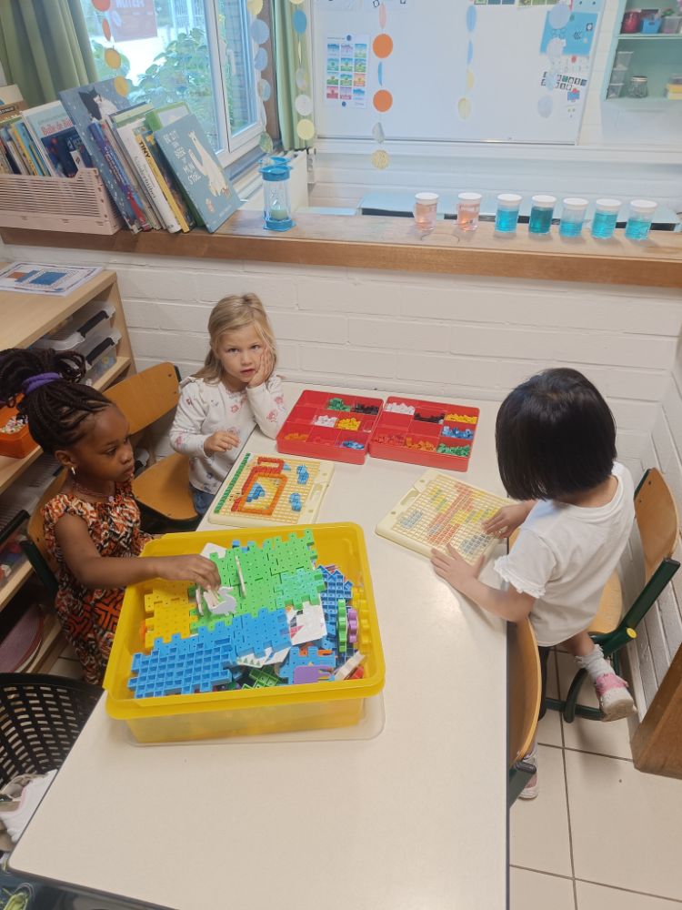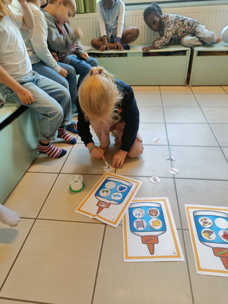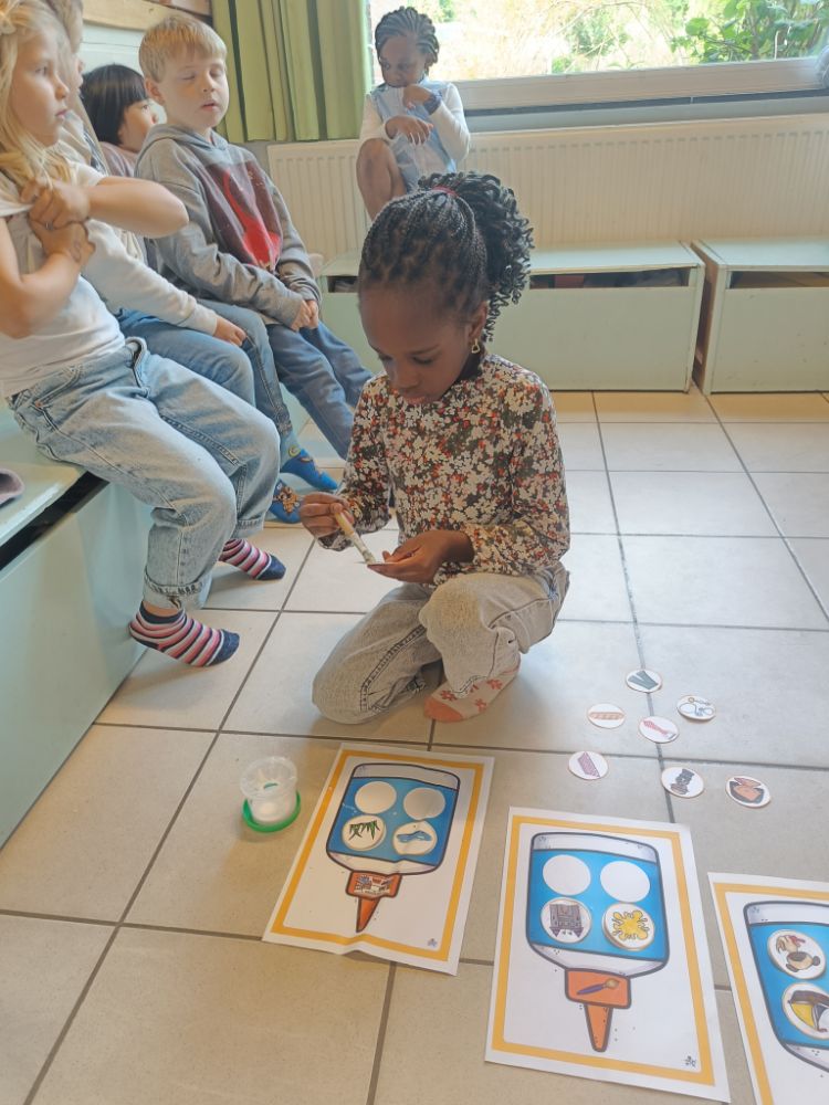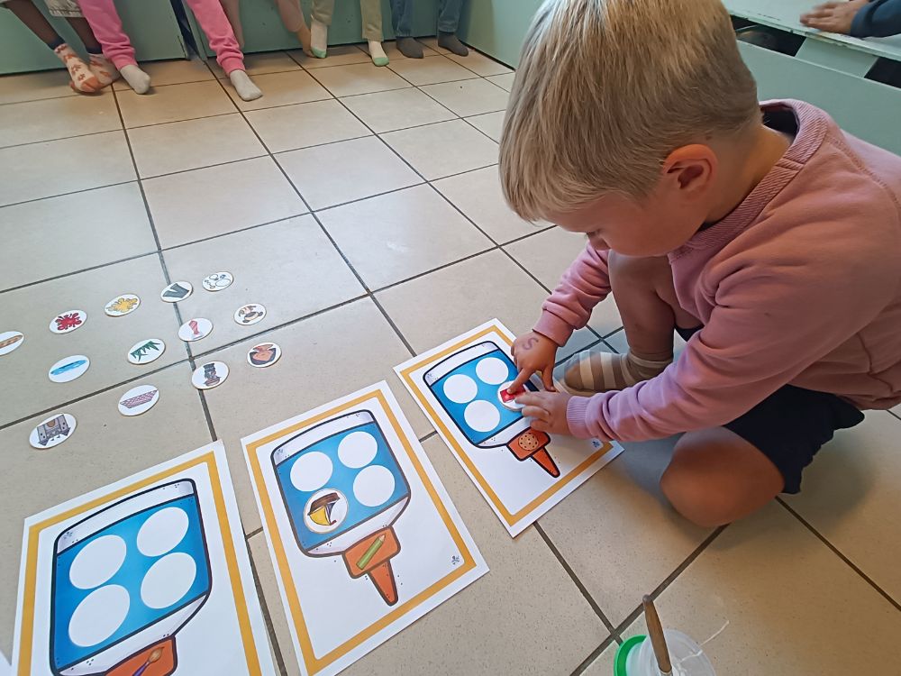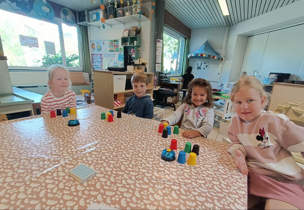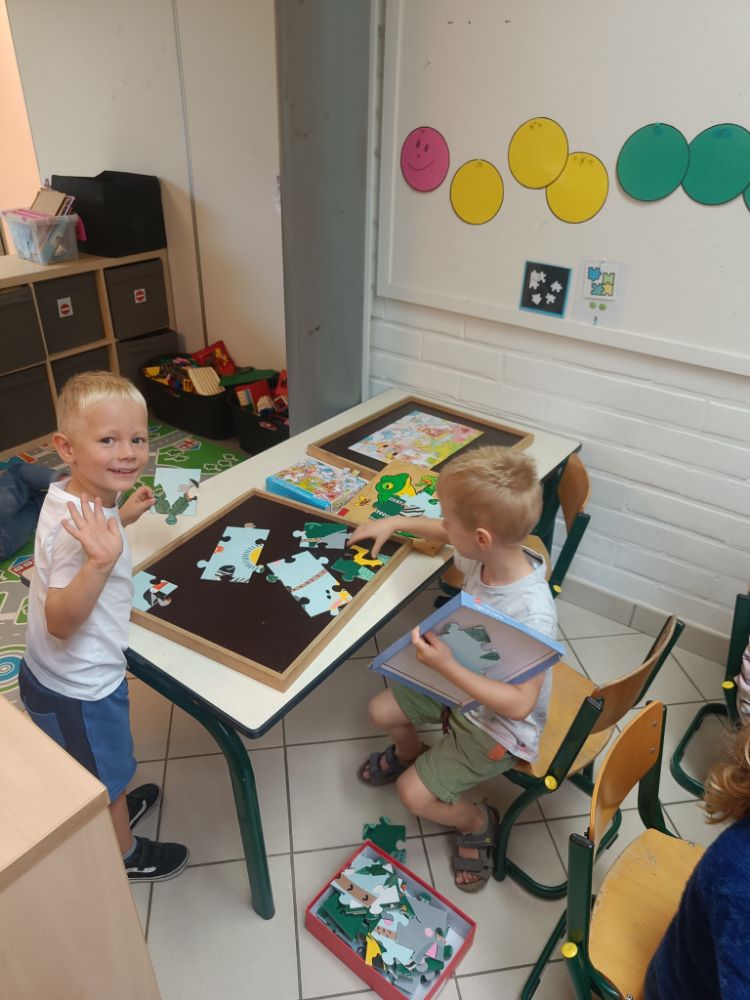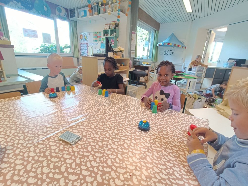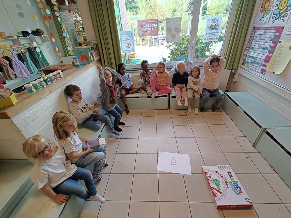 We zijn er goed ingevlogen! We waren van in het begin al bezige bijtjes;-) Samen ontdekten de bloemen onze klas met de bijen. Hoe werkt zo’n kiesbord? En met hoeveel mag je in een hoekje spelen? Allemaal ontdekten we dit de afgelopen weken. We hebben heel wat geknutseld. We schilderden met waterverf een bloem of een bij voor op ons tekenboekje, we maakten een taart op onze foto voor de verjaardagskalender en we schilderden onszelf op een leuke achtergrond (die we zelf met kleurrijke papiertjes bekleefden). Op woensdag leggen we even onze knutselspullen opzij en spelen we een gezelschapsspelletje, dit keer was het speed cup. Wij zullen dit iedere woensdag doen zodat alle spelletjes uit onze spelletjeskast aan de beurt komen. Juf Ann nam op donderdagnamiddag onze bloemen mee, zo had juf eens extra tijd voor de bijtjes alleen. Die tijd namen we om enkele taalspelletjes te spelen. We leerden de letter ‘S’ aan en zochten daarbij naar woorden die beginnen met deze letter. Daarna verdiepten we ons nog eens in het rijmen. Bovenaan de lijmfles staat er telkens een afbeelding en welke figuurtjes rijmen er daar nu precies op? Eens de bloemen terug waren zochten we samen met de bijtjes naar spullen in onze klas die met de letter ‘S’ beginnen. Juf zette een timer op ons bord om het extra spannend te maken. De komende twee weken werken we rond thema bloemen en bijen. Indien jullie hierover spullen hebben mogen jullie die genaamtekend meebrengen naar de klas. Vele groetjes Juf Laure