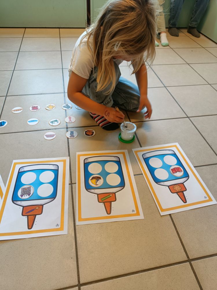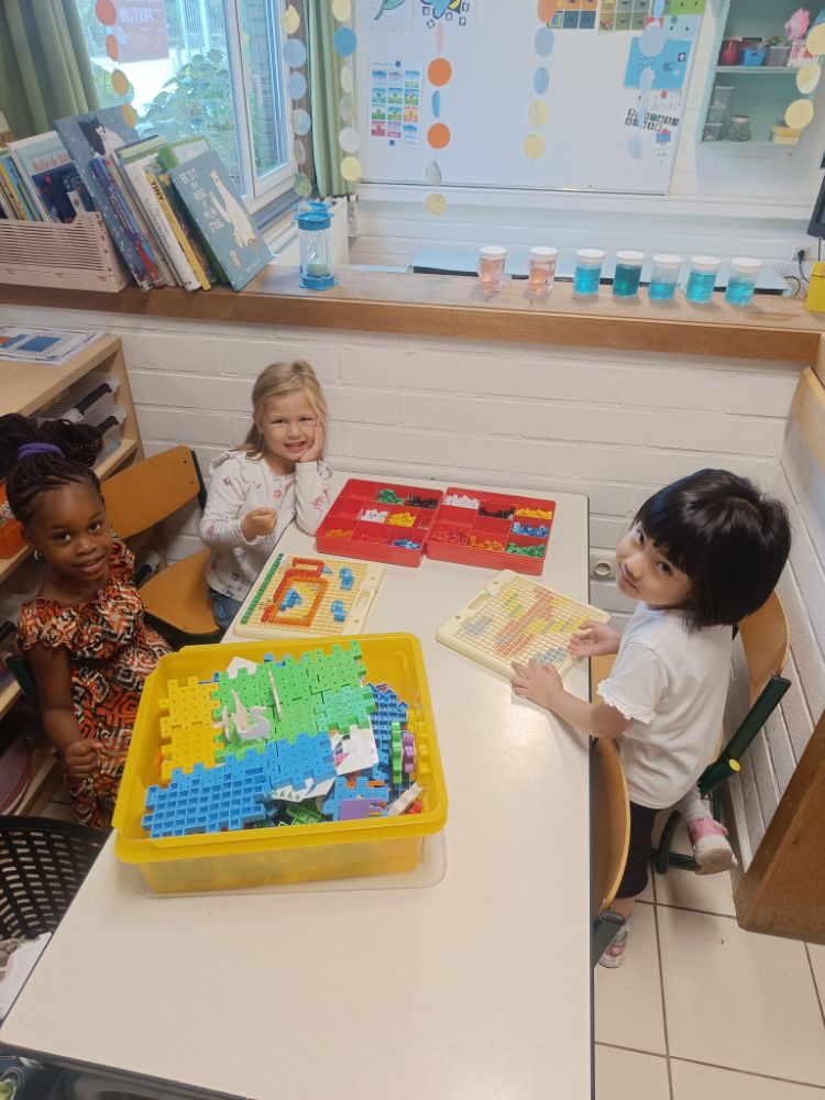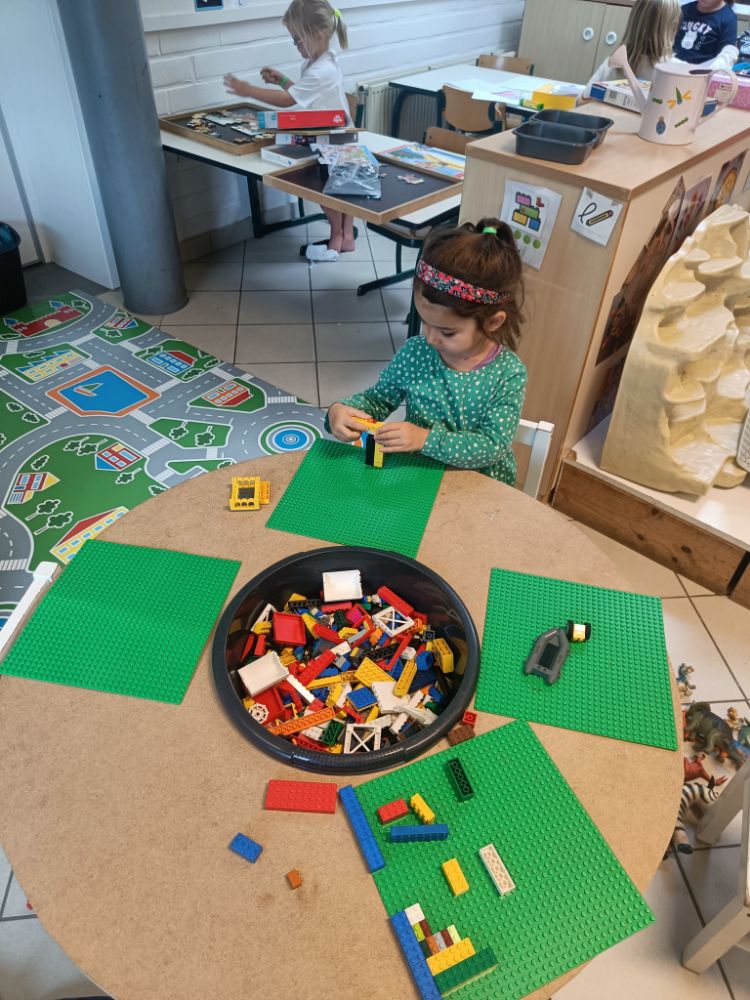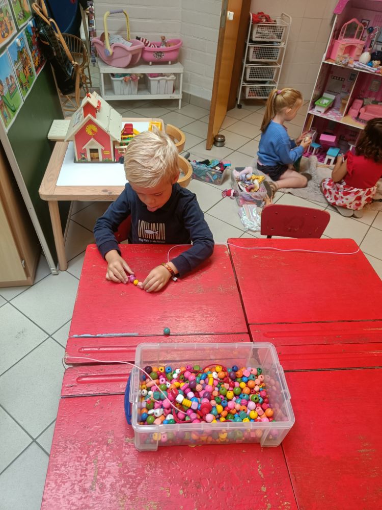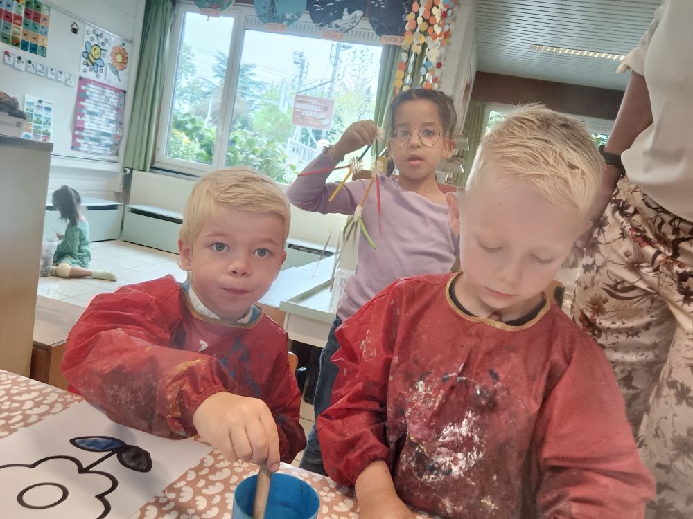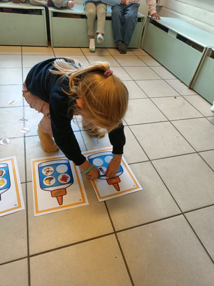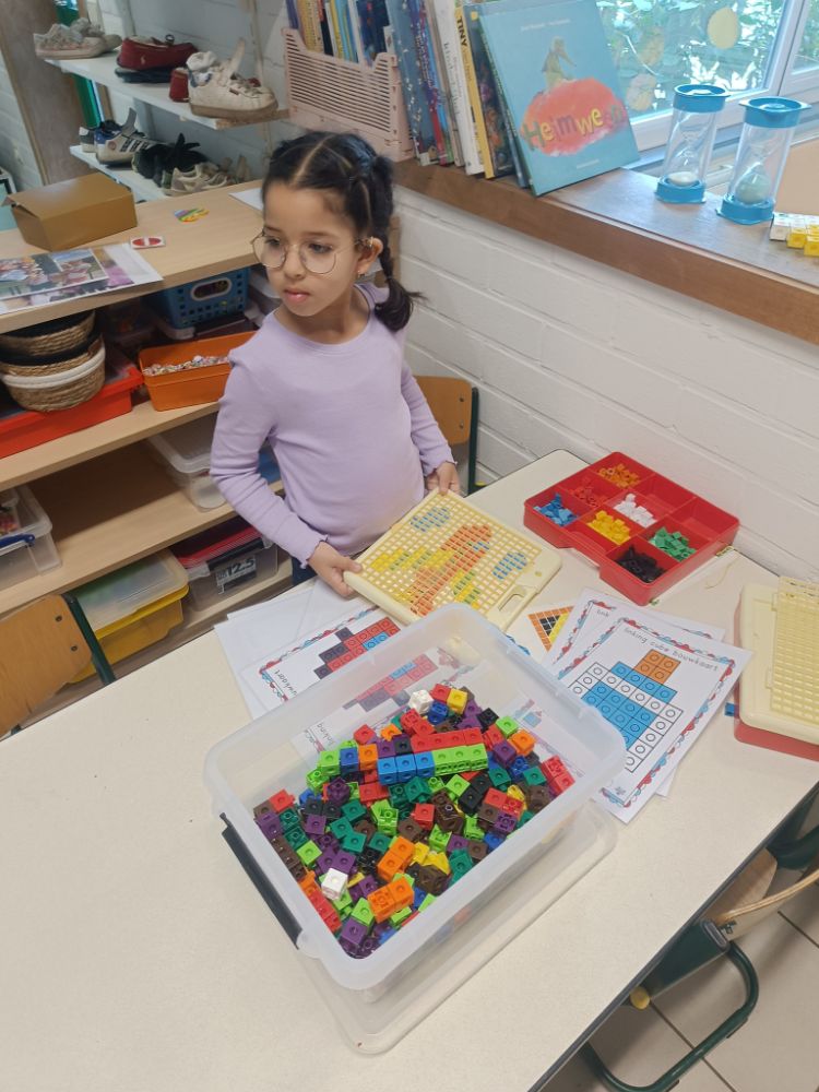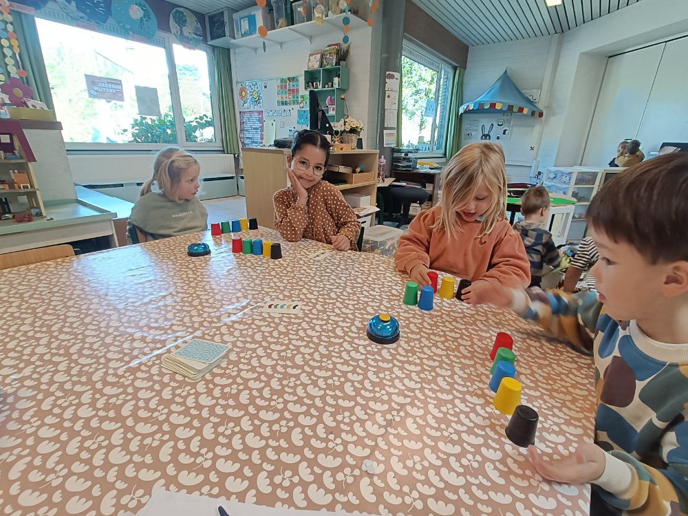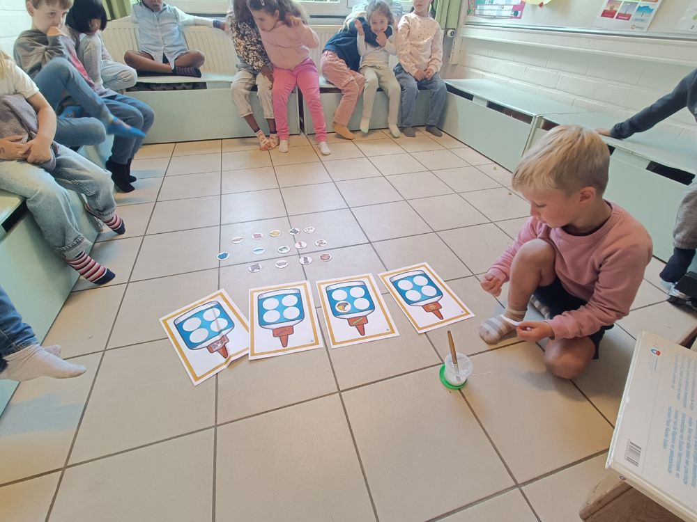 We zijn er goed ingevlogen! We waren van in het begin al bezige bijtjes;-) Samen ontdekten de bloemen onze klas met de bijen. Hoe werkt zo’n kiesbord? En met hoeveel mag je in een hoekje spelen? Allemaal ontdekten we dit de afgelopen weken. We hebben heel wat geknutseld. We schilderden met waterverf een bloem of een bij voor op ons tekenboekje, we maakten een taart op onze foto voor de verjaardagskalender en we schilderden onszelf op een leuke achtergrond (die we zelf met kleurrijke papiertjes bekleefden). Op woensdag leggen we even onze knutselspullen opzij en spelen we een gezelschapsspelletje, dit keer was het speed cup. Wij zullen dit iedere woensdag doen zodat alle spelletjes uit onze spelletjeskast aan de beurt komen. Juf Ann nam op donderdagnamiddag onze bloemen mee, zo had juf eens extra tijd voor de bijtjes alleen. Die tijd namen we om enkele taalspelletjes te spelen. We leerden de letter ‘S’ aan en zochten daarbij naar woorden die beginnen met deze letter. Daarna verdiepten we ons nog eens in het rijmen. Bovenaan de lijmfles staat er telkens een afbeelding en welke figuurtjes rijmen er daar nu precies op? Eens de bloemen terug waren zochten we samen met de bijtjes naar spullen in onze klas die met de letter ‘S’ beginnen. Juf zette een timer op ons bord om het extra spannend te maken. De komende twee weken werken we rond thema bloemen en bijen. Indien jullie hierover spullen hebben mogen jullie die genaamtekend meebrengen naar de klas. Vele groetjes Juf Laure