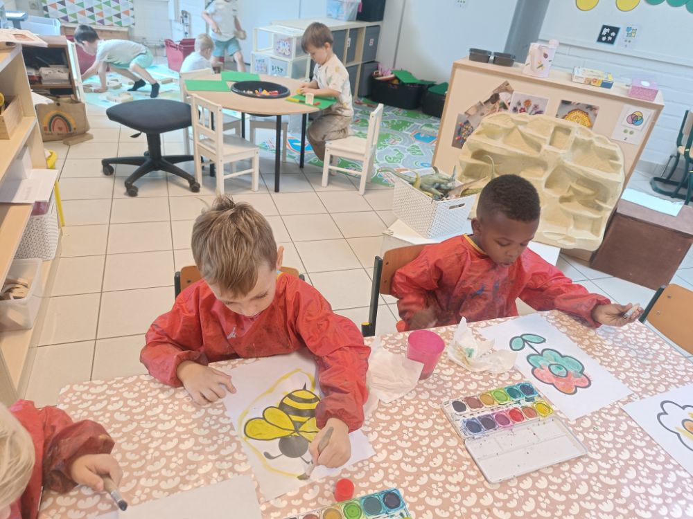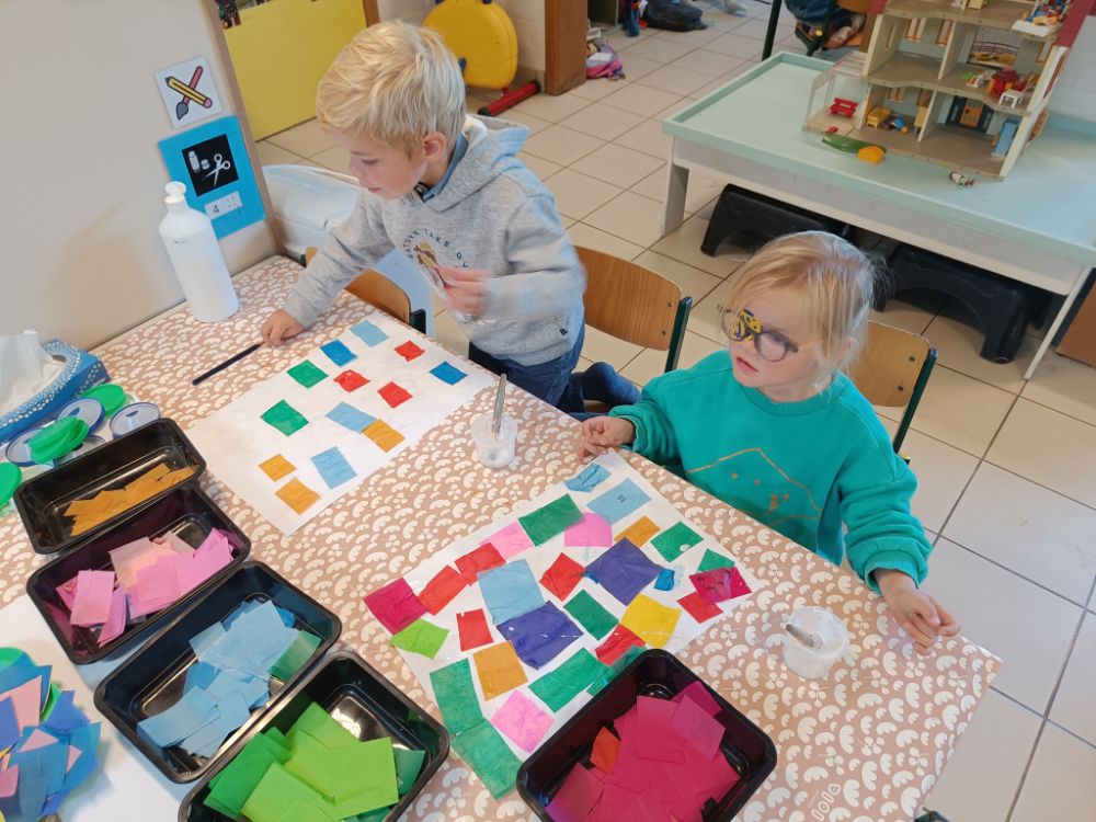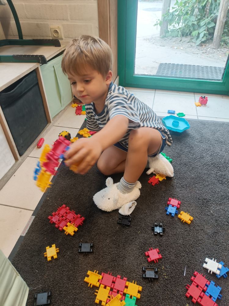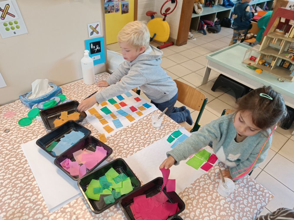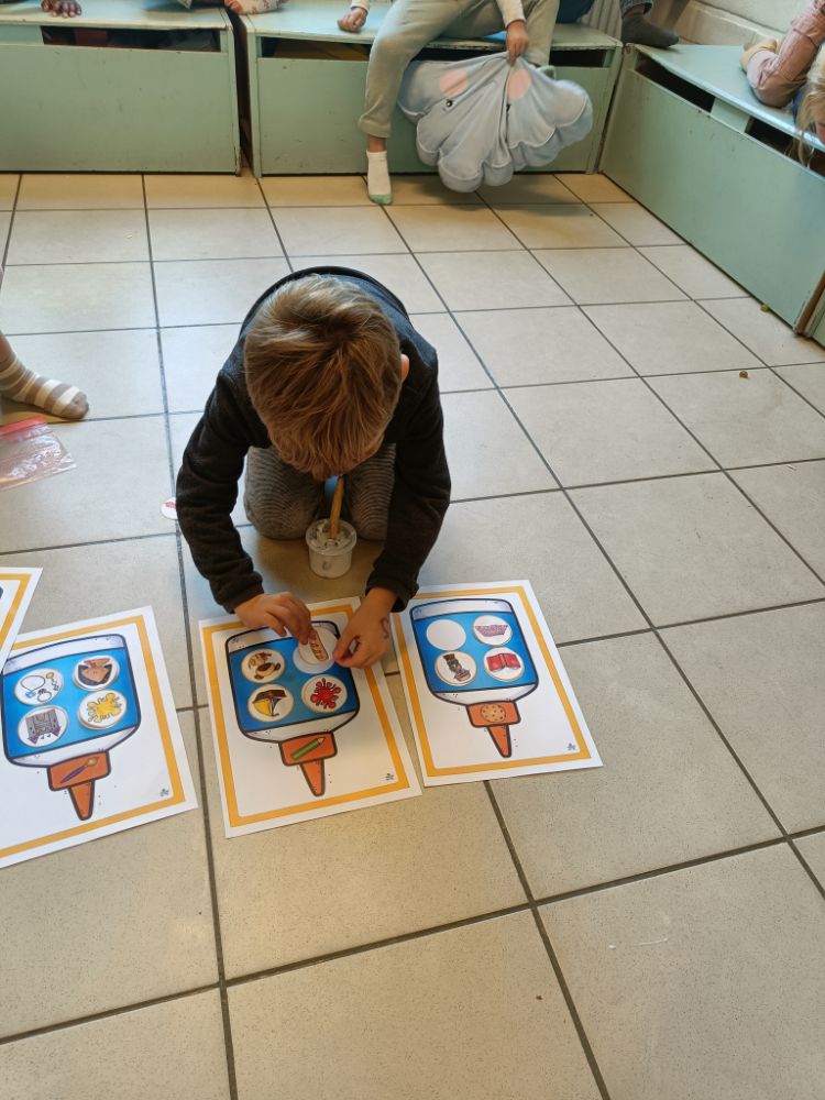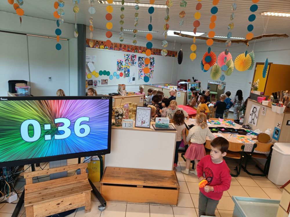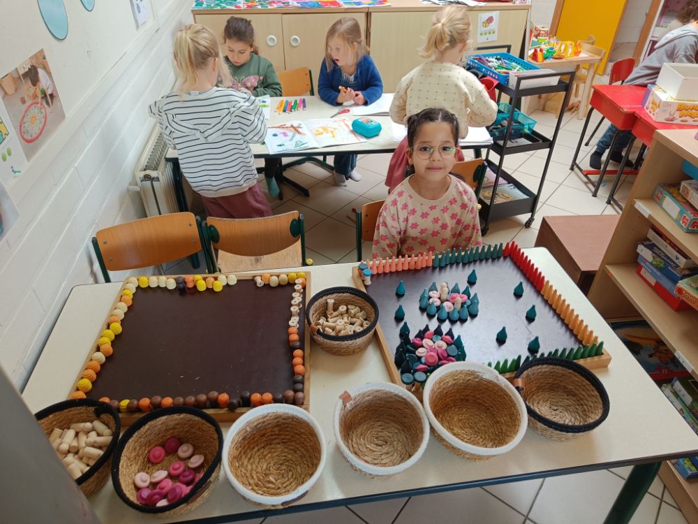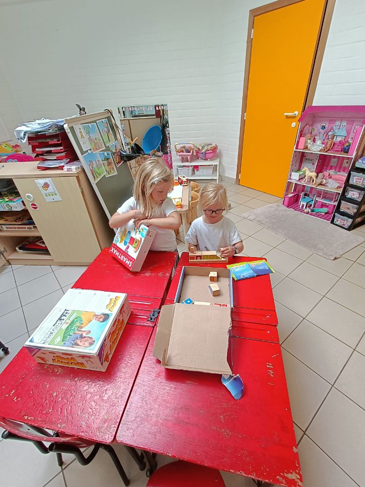We zijn er goed ingevlogen! We waren van in het begin al bezige bijtjes;-) Samen ontdekten de bloemen onze klas met de bijen. Hoe werkt zo’n kiesbord? En met hoeveel mag je in een hoekje spelen? Allemaal ontdekten we dit de afgelopen weken. We hebben heel wat geknutseld. We schilderden met waterverf een bloem of een bij voor op ons tekenboekje, we maakten een taart op onze foto voor de verjaardagskalender en we schilderden onszelf op een leuke achtergrond (die we zelf met kleurrijke papiertjes bekleefden). Op woensdag leggen we even onze knutselspullen opzij en spelen we een gezelschapsspelletje, dit keer was het speed cup. Wij zullen dit iedere woensdag doen zodat alle spelletjes uit onze spelletjeskast aan de beurt komen. Juf Ann nam op donderdagnamiddag onze bloemen mee, zo had juf eens extra tijd voor de bijtjes alleen. Die tijd namen we om enkele taalspelletjes te spelen. We leerden de letter ‘S’ aan en zochten daarbij naar woorden die beginnen met deze letter. Daarna verdiepten we ons nog eens in het rijmen. Bovenaan de lijmfles staat er telkens een afbeelding en welke figuurtjes rijmen er daar nu precies op? Eens de bloemen terug waren zochten we samen met de bijtjes naar spullen in onze klas die met de letter ‘S’ beginnen. Juf zette een timer op ons bord om het extra spannend te maken. De komende twee weken werken we rond thema bloemen en bijen. Indien jullie hierover spullen hebben mogen jullie die genaamtekend meebrengen naar de klas. Vele groetjes Juf Laure