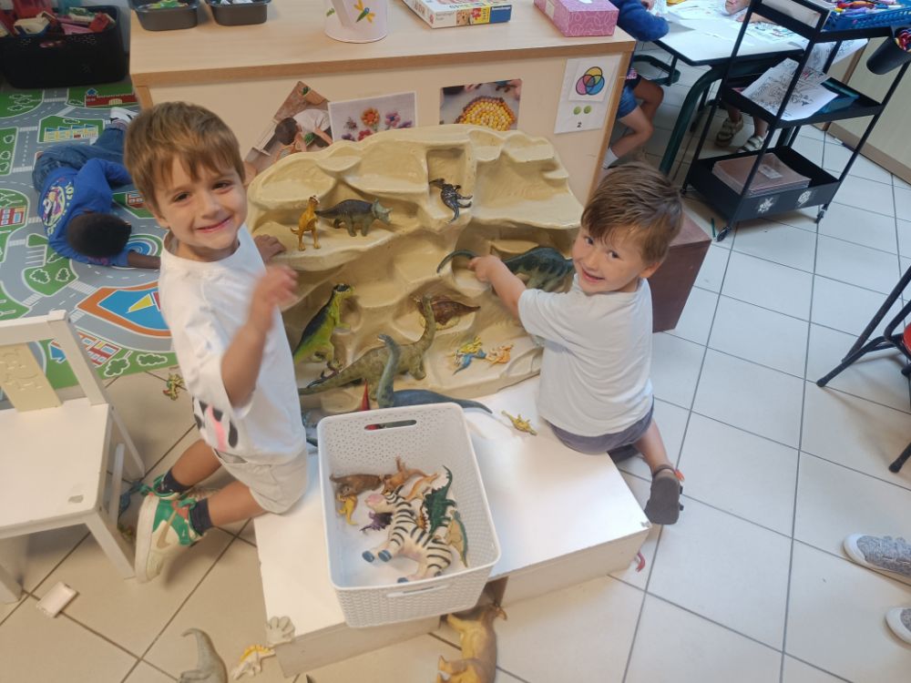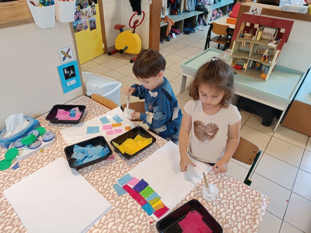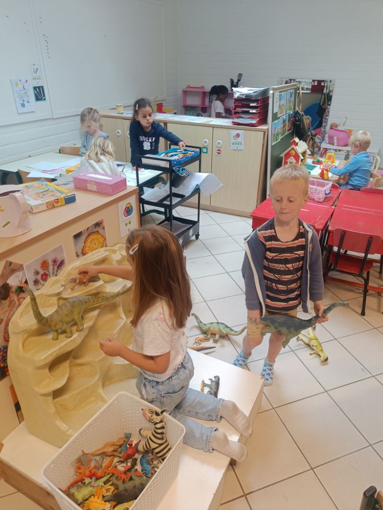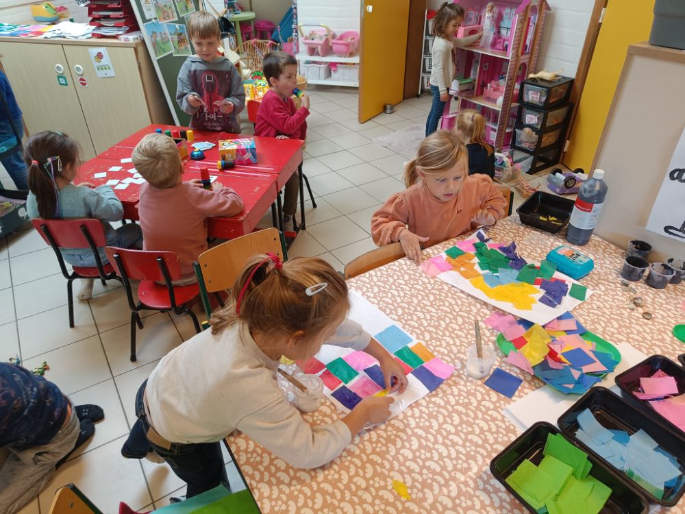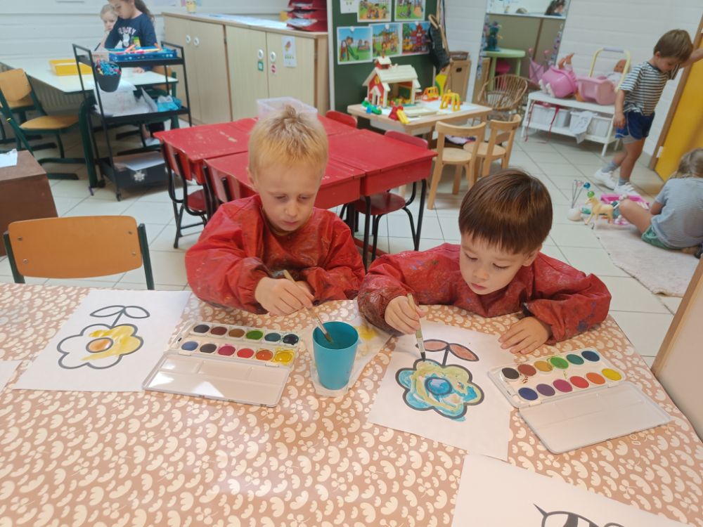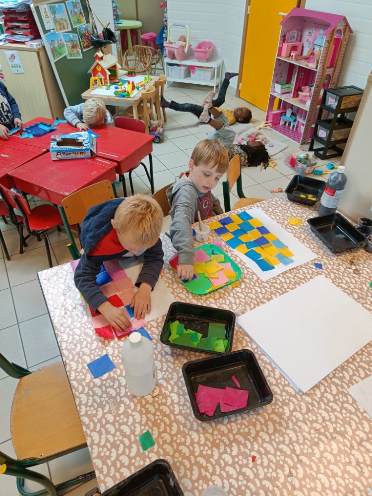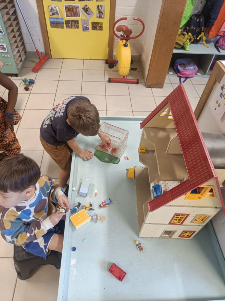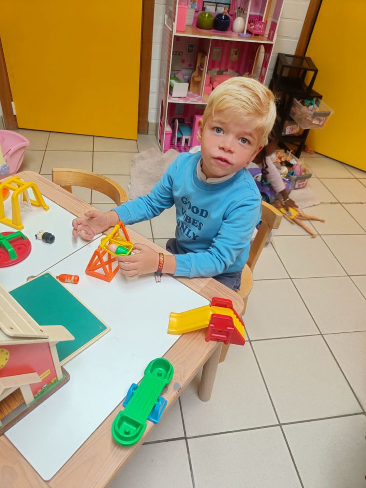 We zijn er goed ingevlogen! We waren van in het begin al bezige bijtjes;-) Samen ontdekten de bloemen onze klas met de bijen. Hoe werkt zo’n kiesbord? En met hoeveel mag je in een hoekje spelen? Allemaal ontdekten we dit de afgelopen weken. We hebben heel wat geknutseld. We schilderden met waterverf een bloem of een bij voor op ons tekenboekje, we maakten een taart op onze foto voor de verjaardagskalender en we schilderden onszelf op een leuke achtergrond (die we zelf met kleurrijke papiertjes bekleefden). Op woensdag leggen we even onze knutselspullen opzij en spelen we een gezelschapsspelletje, dit keer was het speed cup. Wij zullen dit iedere woensdag doen zodat alle spelletjes uit onze spelletjeskast aan de beurt komen. Juf Ann nam op donderdagnamiddag onze bloemen mee, zo had juf eens extra tijd voor de bijtjes alleen. Die tijd namen we om enkele taalspelletjes te spelen. We leerden de letter ‘S’ aan en zochten daarbij naar woorden die beginnen met deze letter. Daarna verdiepten we ons nog eens in het rijmen. Bovenaan de lijmfles staat er telkens een afbeelding en welke figuurtjes rijmen er daar nu precies op? Eens de bloemen terug waren zochten we samen met de bijtjes naar spullen in onze klas die met de letter ‘S’ beginnen. Juf zette een timer op ons bord om het extra spannend te maken. De komende twee weken werken we rond thema bloemen en bijen. Indien jullie hierover spullen hebben mogen jullie die genaamtekend meebrengen naar de klas. Vele groetjes Juf Laure