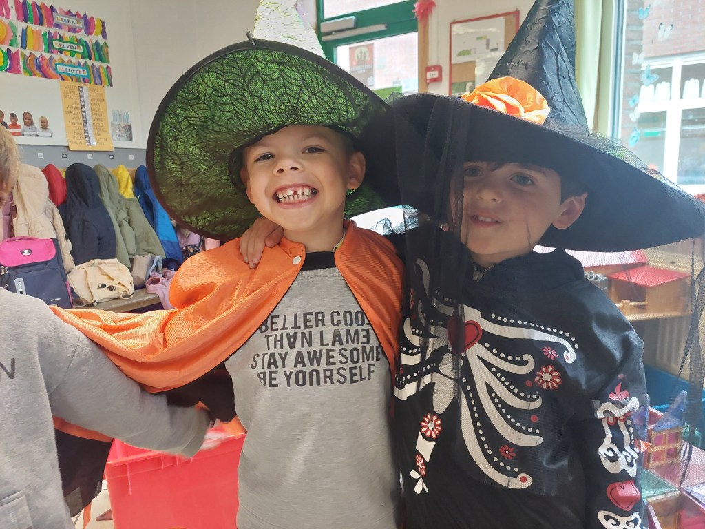 In bijlage de foto’s van ons griezelige maar gezellige heksenthema.