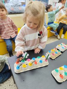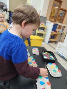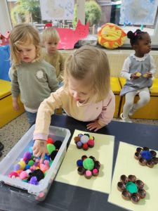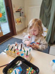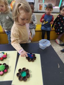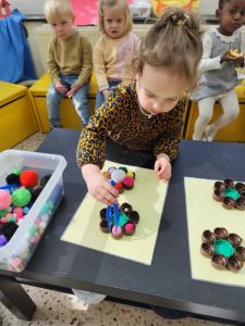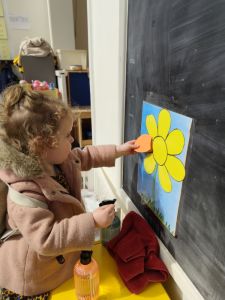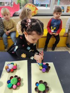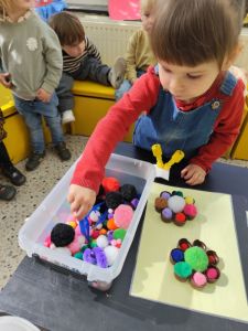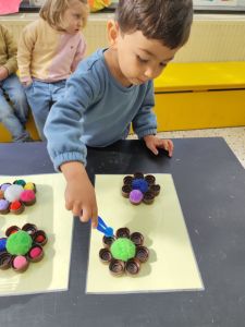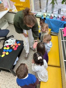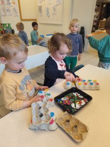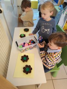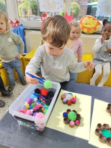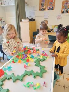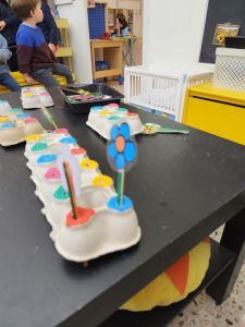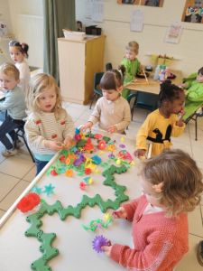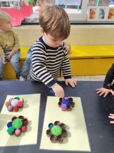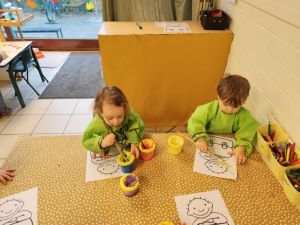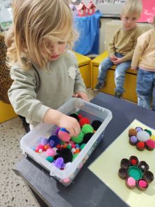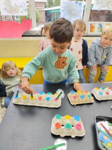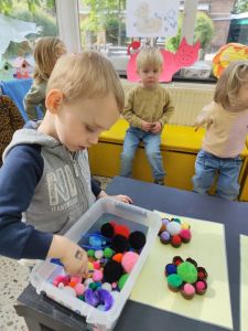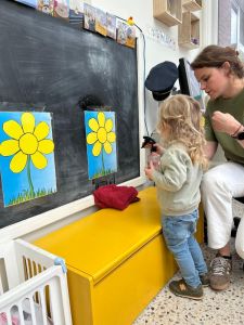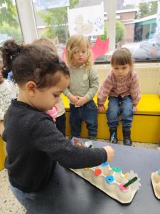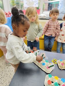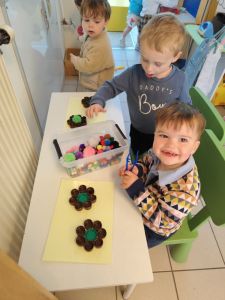 Welkom aan Hector, Hector, Julie en Aya. De nieuwe eendjes uit onze klas! Onze eendjes maakten een hele vlot start, alsof ze al altijd in ons klasje waren. Hierdoor konden wij onmiddellijk aan de slag met ons nieuw thema van bloemen en moederdag πΌ Wij deden tal van leuke activiteiten, de spelletjes die in onze klas lagen speelden we eerst eens op voorhand in onze kring. Zo stimuleerden wij de fijne motoriek door met een pincet balletjes in de bloemetjes te plaatsen om de bloemen fleuriger te maken. Door met een waterspuit de bloem nat te maken konden de peuters foam blaadjes kleven. Kleuren konden we in oefenen adhv de bloemen in het juiste gaatje te steken van de moestuin. Ook begonnen we aan de kaartjes van moederdag. Maar dit blijft nog eventjes geheim. Nog even wachten op de volgende post mama’s!