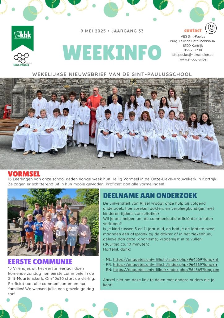 Lees via de volgende link de weekinfo van 9 mei 2025
