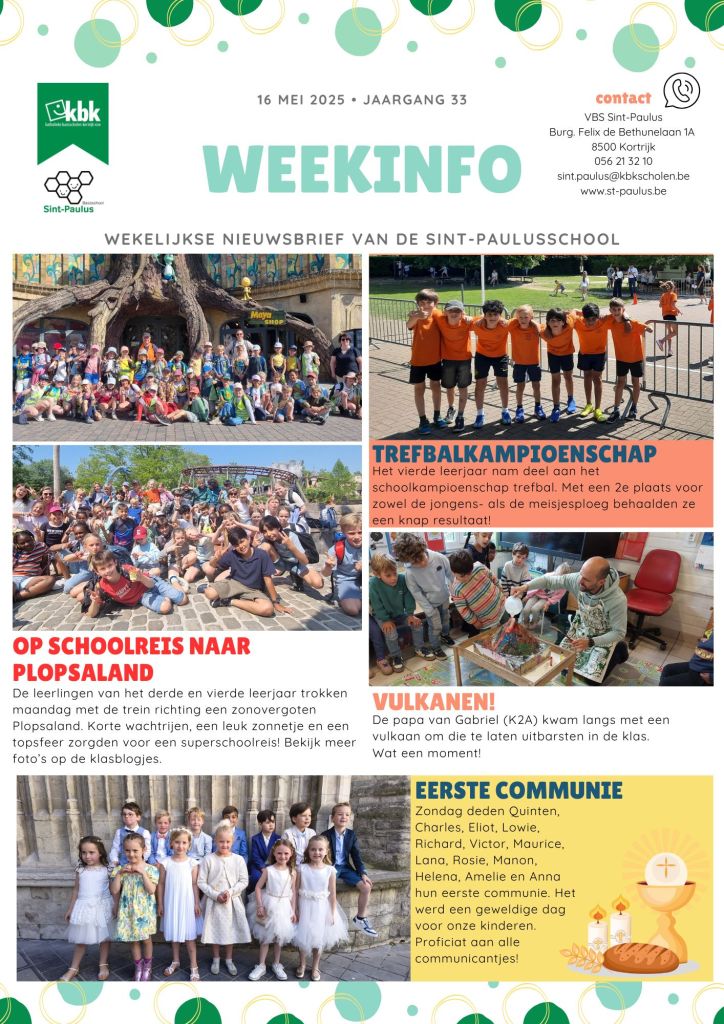 Lees via de volgende link de weekinfo van 16 mei 2025
