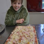 Gisteren deden we een megatoffe quiz. Dat was na het avondeten: hotdogs! Die waren bijna allemaal op. Vanmiddag hebben we pizza’s gemaakt. Straks gaan we die bakken en opeten. Vanmorgen stond er een paard op het speelveld. Het ging vlug terug naar zijn weide.