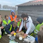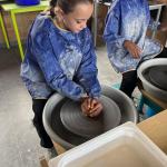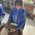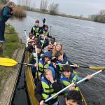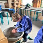 De eerste groep kroop achter de draaitafel om hun eigen potten te maken. Met hun handen in de klei voelden ze zich even echte kunstenaars. Er vlogen hier en daar wat klodders rond, maar er rolden ook verrassend mooie potjes van de schijf. Daarna was het tijd om die kleihandjes af te spoelen in… de kano! Ze trokken de woelige wateren op en ontdekten dat recht blijven in een kano toch nét iets moeilijker is dan in de klas op een stoel. Al had de wind daar zeker iets mee te maken.