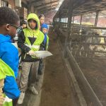 Vandaag zijn we naar boerderij ‘het Waterland’ geweest. De boerderij heeft vleeskoeien, suikerbieten, aardappelen, granen en maakt ook voedsel voor de eigen koeien. De boerin heeft ons heel mooi rondgeleid en veel uitgelegd. Ze hebben heel verse producten die we ook mochten proeven. Dan zijn we naar de koeien zelf gaan kijken, we mochten zelfs kalfjes aaien. In het weekend was er een gezond kalfje geboren. De mama was heel bezorgd toen we daar waren. Na de boeiende uitleg fietsten we met veel tegenwind terug naar de Boerekreek.