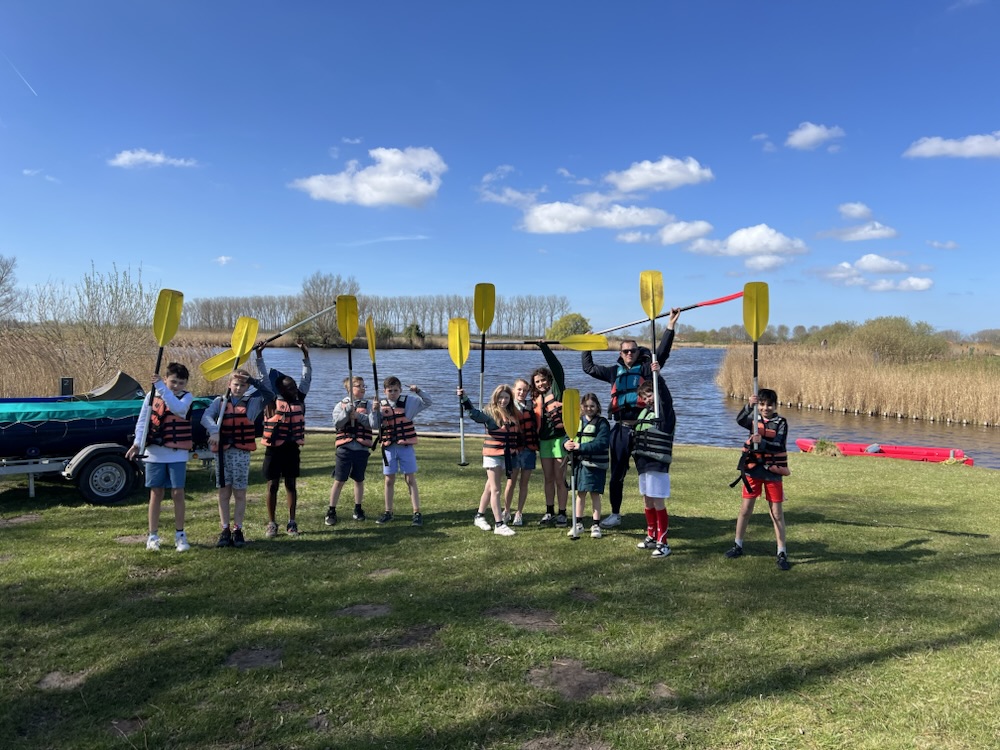 Er stond natuurlijk voor vandaag ook weer en gezonde dosis sport op het programma. Bij juf Ophelia was er een groep die nog moest kennis maken met de “woelige waters” genaamd de Boerekreek. Zij mochten met hun kano opzoek naar het